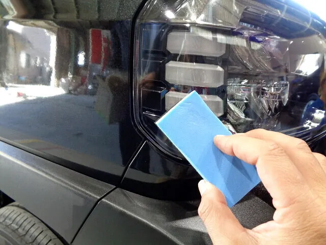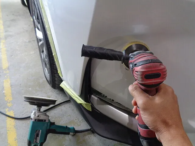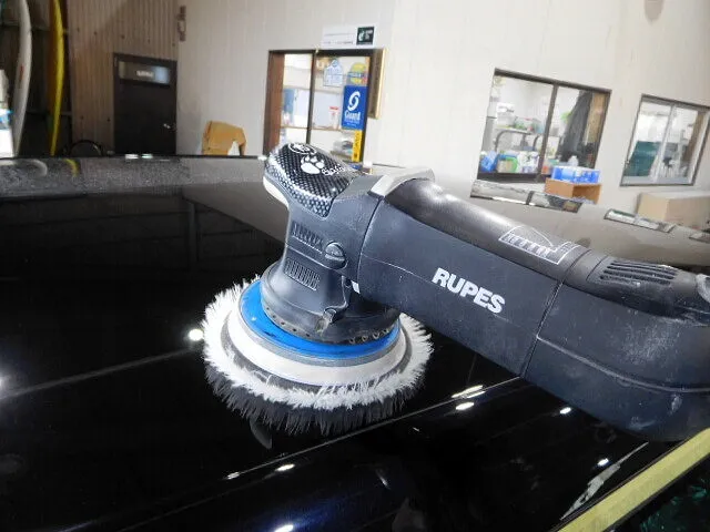 ボディに付着している小さなチリや砂、鉄粉、油分をしっかりと丁寧に洗い流します。洗車後、コーティングの下処理としてしっかりと研磨します。